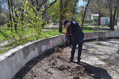 Глава ведомства и сотрудники Минпромполитики провели санитарную уборку в одном из старейших симферопольских парков – Парке культуры и отдыха имени Т. Г. Шевченко, в частности, собрали мусор вокруг и на территории старой танцевальной площадки.