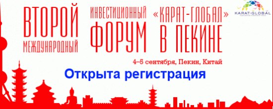 С 4 по 5 сентября 2015 года в г. Пекин (Китай) состоится Второй международный инвестиционный форум «Карат-Глобал».