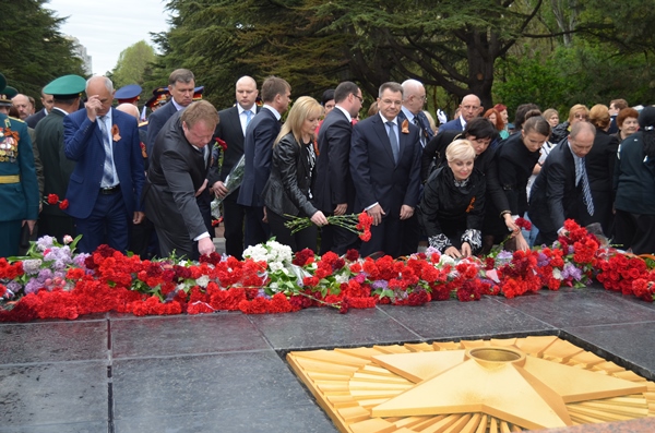8 мая в Гагаринском парке Симферополя состоялось возложение цветов к Вечному огню на могиле Неизвестного Солдата. В торжественных мероприятиях совместно с руководством крымского правительства приняли участие первый заместитель министра промышленной политики РК Константин Равич и заместитель министра промышленной политики РК Ян Латышев.